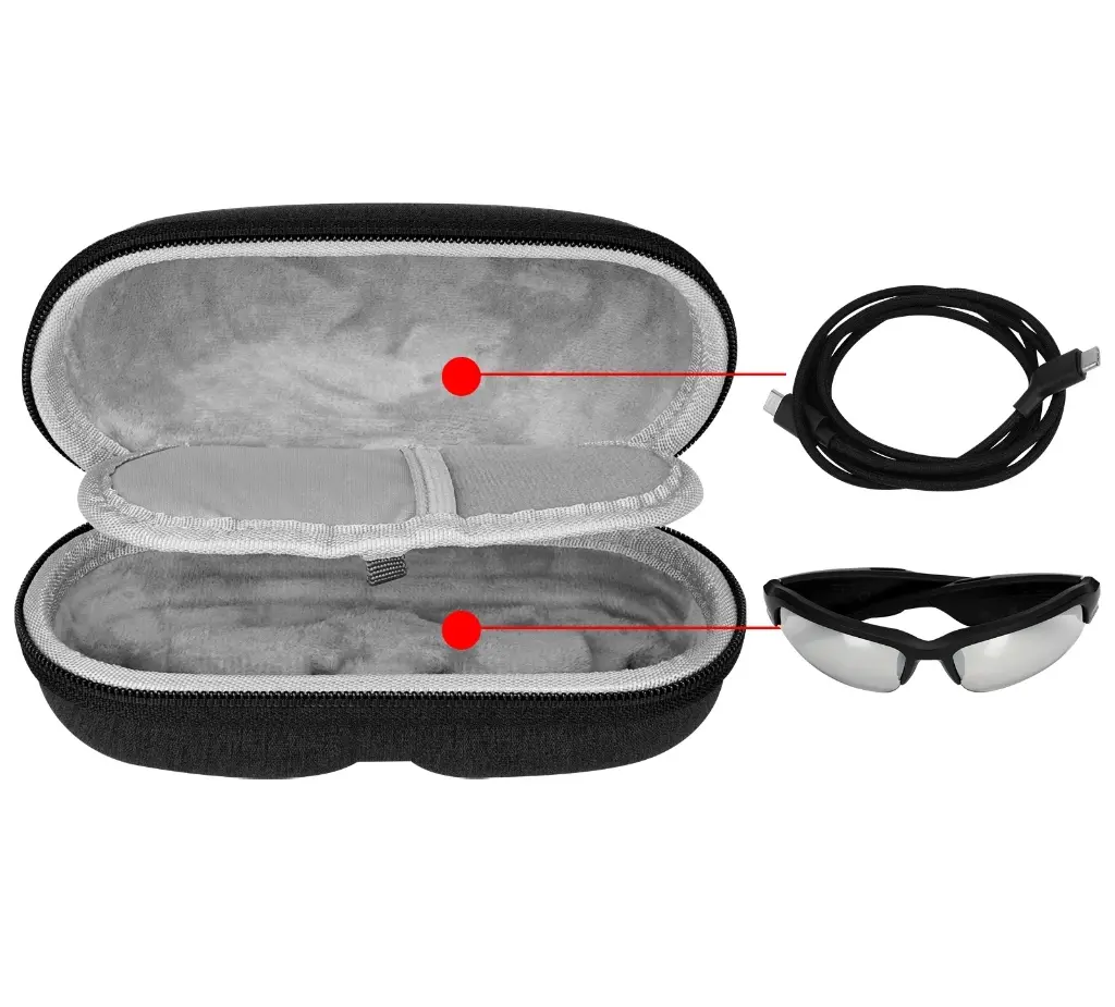 เคสแว่นตาทำจาก EVA ความหนาแน่นสูงพร้อมโครงสร้างภายในที่อ่อนนุ่มช่วยให้มั่นใจได้ถึงการปกป้องแว่นตาและอุปกรณ์เสริมอื่น ๆ